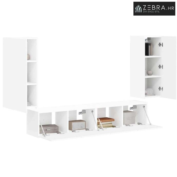 Višenamjenski spremnici Nudeći razna rješenja za pohranu, centar uključuje pretince, police i sekcije za uredno organiziranje kablova, daljinskih upravljača i dodataka. Podesive police pružaju fleksibilnost za reorganizaciju prostora prema vašim potrebama.