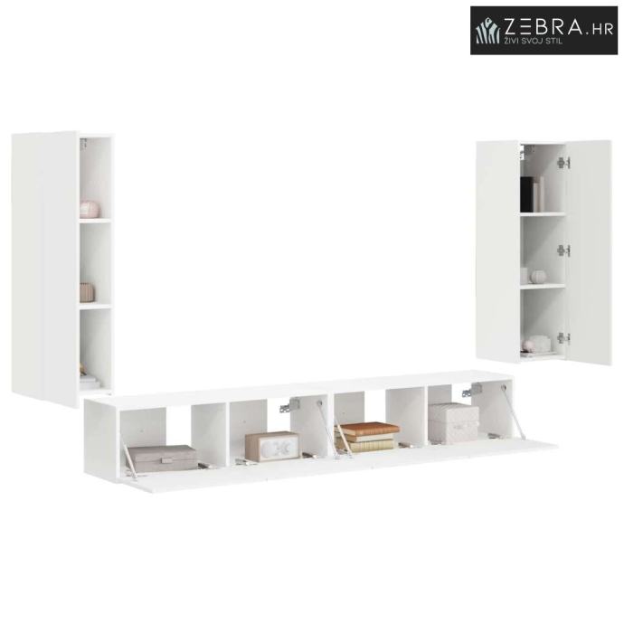 Integrisana rešenja za skladištenje: Pametno dizajnirane pregrade, ladice i police maksimalno koriste prostor. Ove ugrađene opcije će vam pomoći da sve vaše medijske uređaje, daljinske upravljače i kolekcije držite organizovano i na dohvat ruke.
