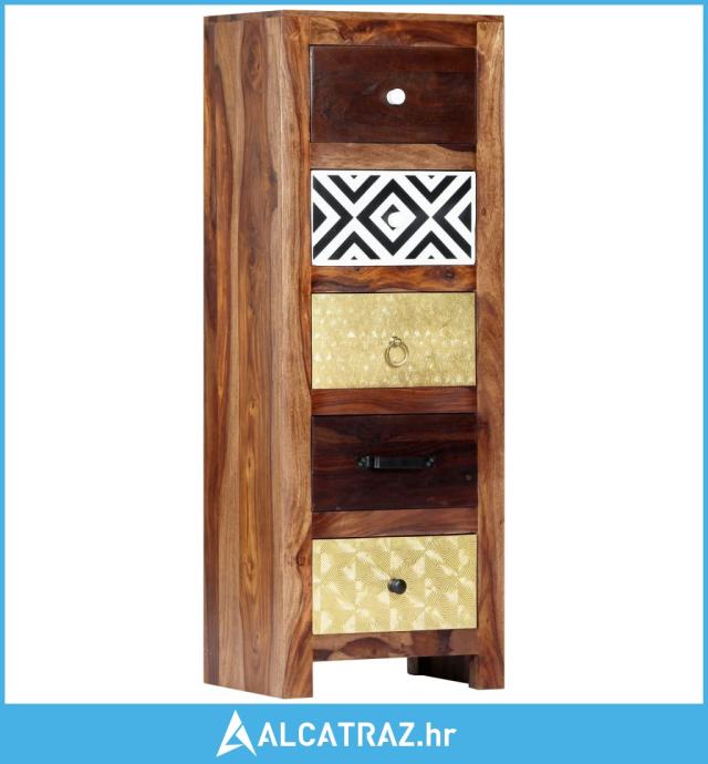 Napravljen od masivnog pravog drva šišama s delikatnim miješanim uzorkom, ovaj izdržljivi ladičar odiše starinskim šarmom. Šišam, također poznat kao ružino drvo ili palisander, tropsko je tvrdo drvo popularno zbog svojih bogatih godova. Drvo šišama dobilo je prekrasan završni sloj poliranjem, bojenjem i lakiranjem, zbog čega bočni ormarioć odiše profinjenim izgledom. Uz to, 5 ladica pruža dovoljno prostora za držanje stvari organiziranima i na dohvat ruke. Sastavljanje je jednostavno.