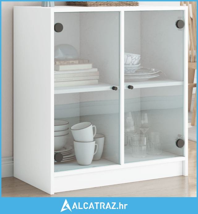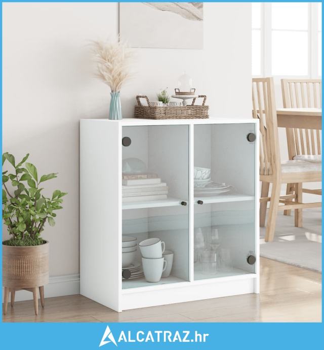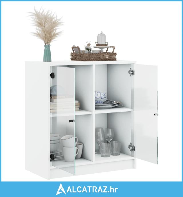 Bočni ormarić sa staklenim vratima bijeli 68 x 37 x 75,5 cm - NOVO