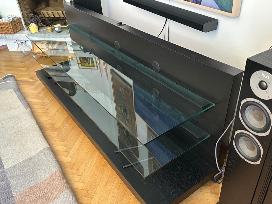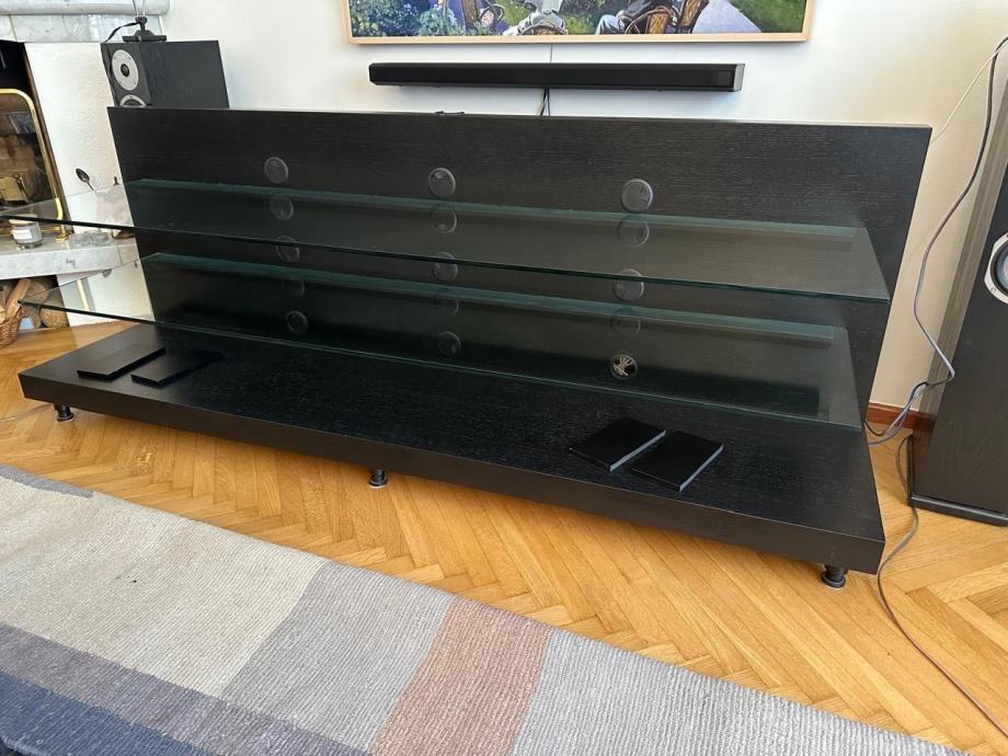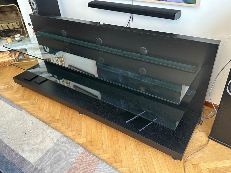 Prodajem crni TV/ HI-FI stol s policama od kaljenog stakla