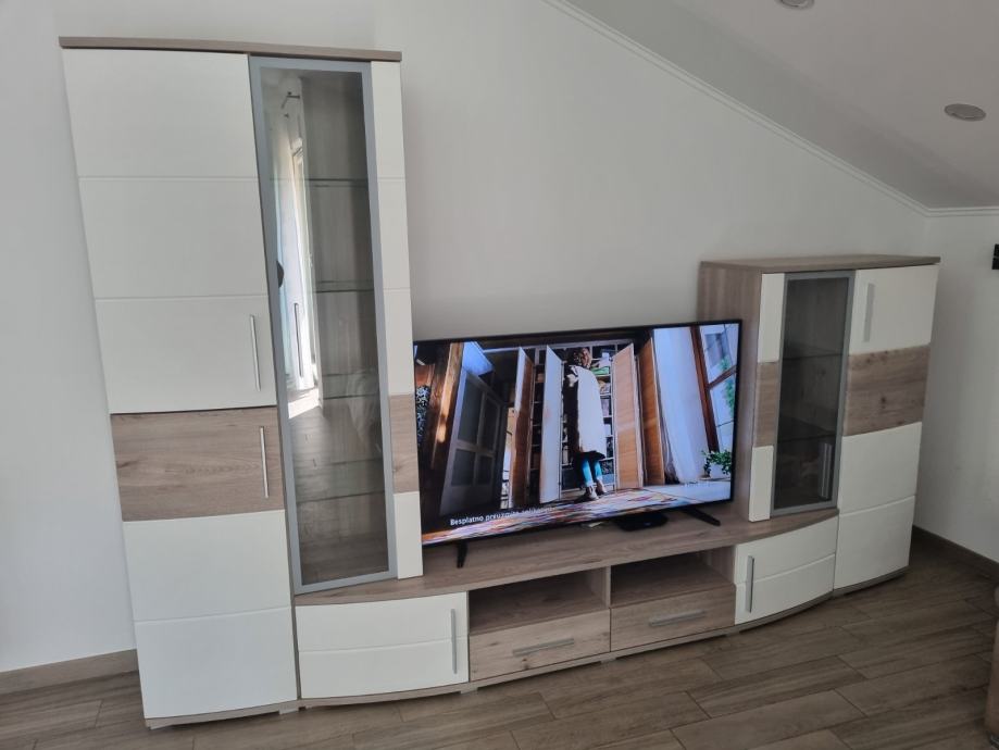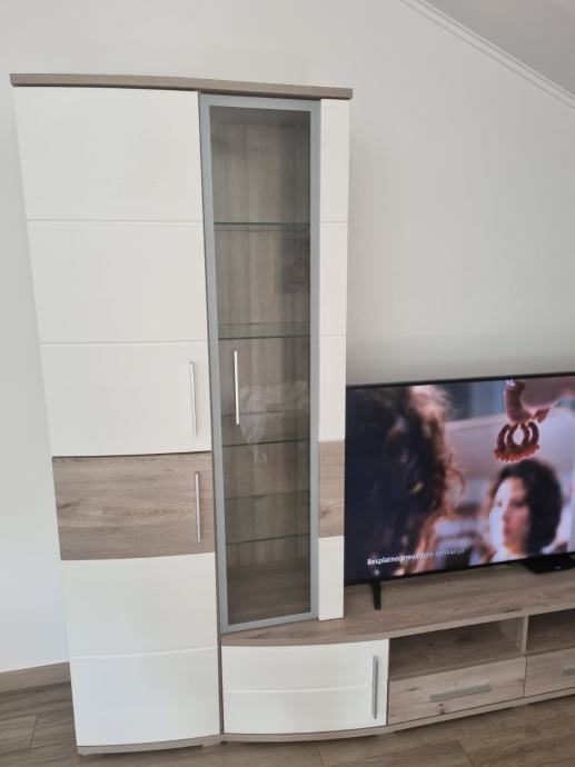 Prodajem regal za dnevnu sobu duljine 2,4m, očuvan, ima 3 godine, kupljen u Lesnini, uz njega idu police koje nisu montirane, bez ogrebotina.