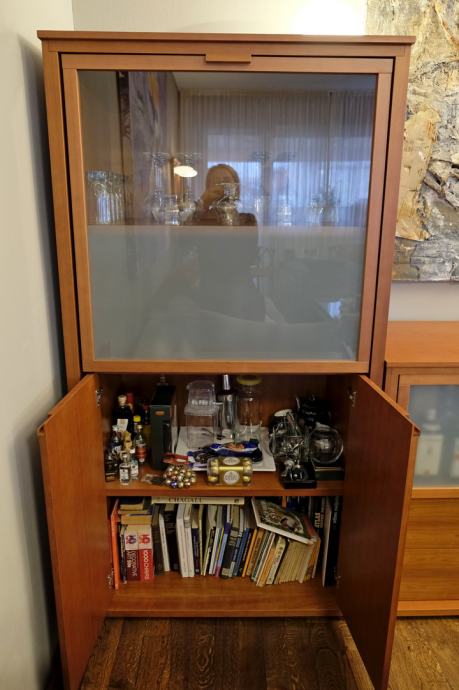 - gornji dio je prostor za piće i/ili čaše i staklena klizna vrata