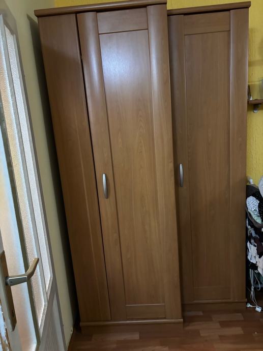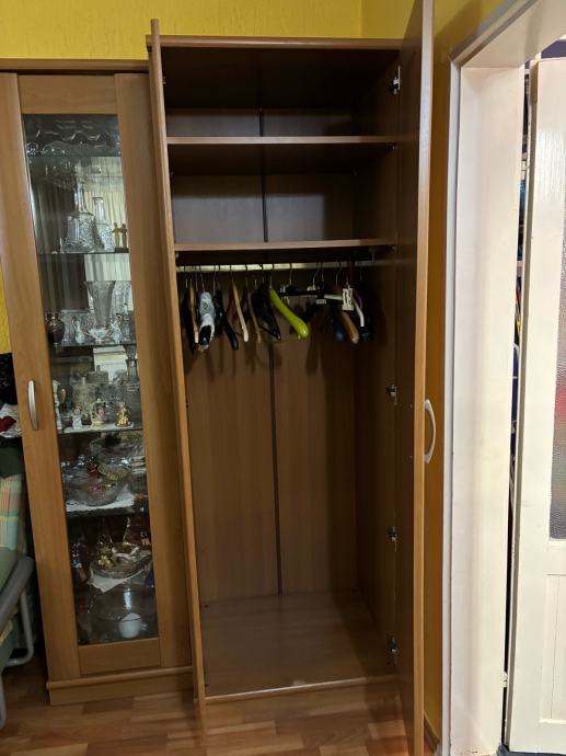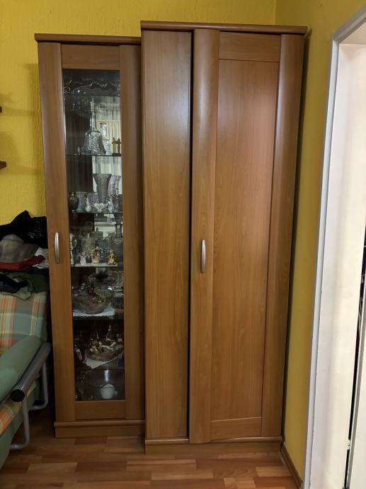 Ugaoni elementi 130 plus 86x86 cm, ormar sa staklenom vitrinom i dupli ormar 122x210 cm