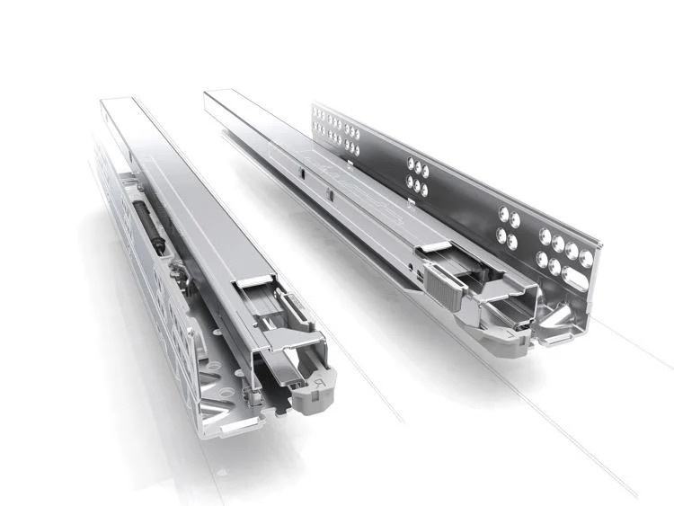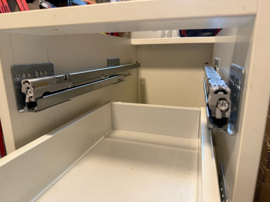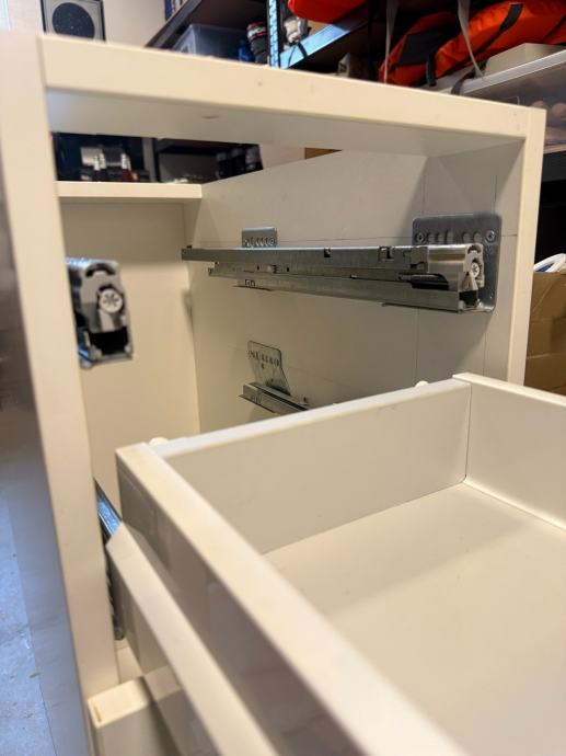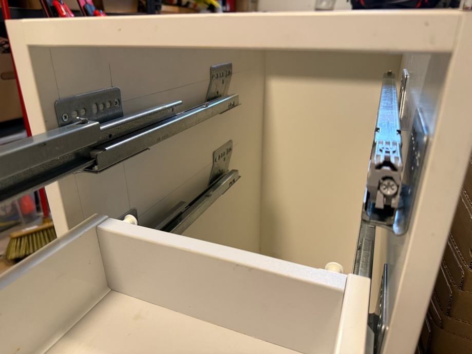 Uz vodilice dajem lijevu i desnu metalnu bočnu plohu ladice koja se natakne na vodilice. Širinu ladice birate samostalno i po želji. Ovaj model vodilica može se koristiti i za drvene i za čelične ladice.