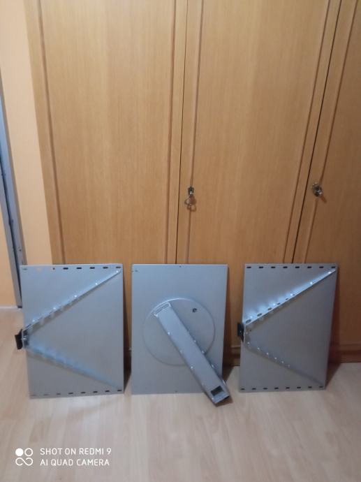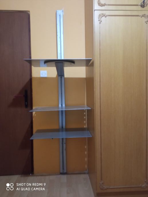 Prodajem HIFI stalažu koja je na slici. Stalaža je jako stabilna. Dužina glavne šine 2 m. Dvije police su čvrste a jedna je pokretna. ( može se okretati ) Mjere polica su; Š. 60 cm. Dubina 0 cm. Na poruke ne odgovaram.