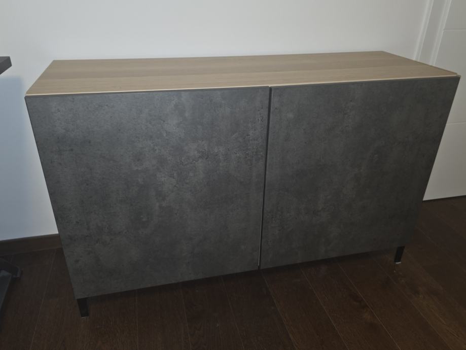 Ikea BESTÅ regal s vratima - bijelo bajcani hrast + Kallviken tamno siva fronta - 120x42x64 cm - 90€