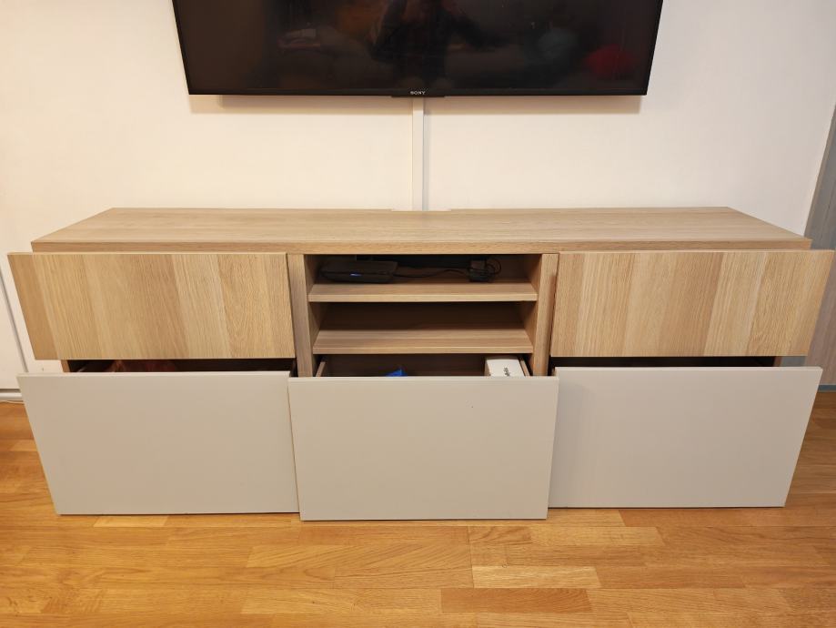 Ima 5 ladica sa push open funkcijom i dvije police.