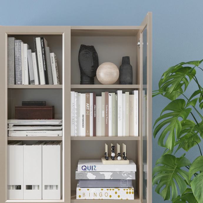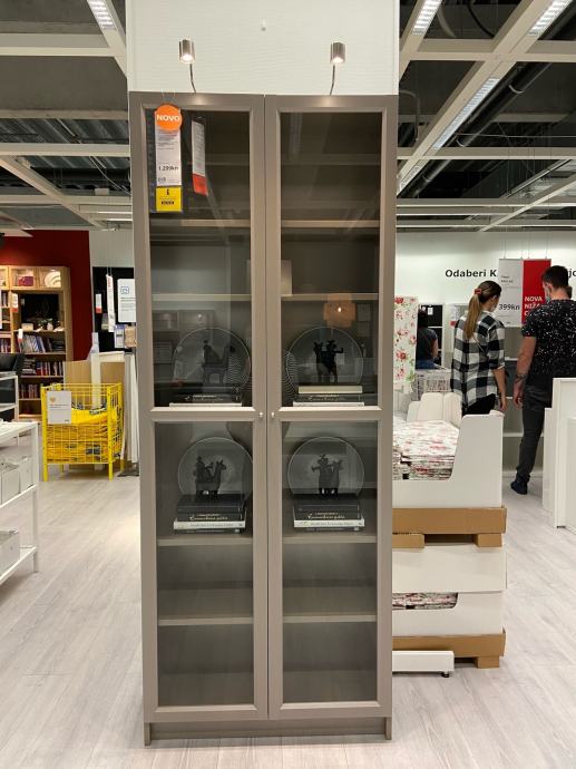 IKEA/BILLY Biblioteka sa staklenim vratima, siva/metalik80x30x202 cm