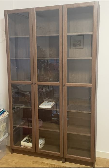 Komb biblioteke sa staklenim vratima, tamno smeđa efekt hrasta/prozirno staklo, 120x30x202 cm