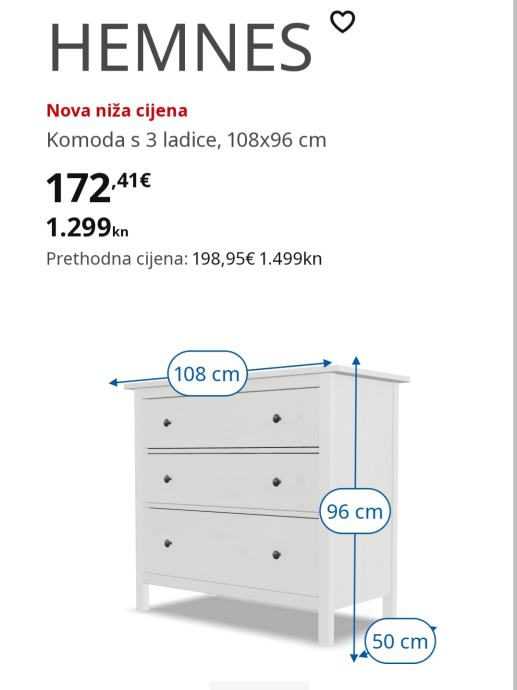 Prodajem izvrsno očuvanu Ikea komodu bijele boje.
