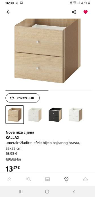 Potpuno novi, nekorišten, samo sastavljen Ikein kallax umetak 2 ladice u boji hrasta -za kallax regale.(kupljen prije mj.dana). Osobno preuzimanje na Krugama.