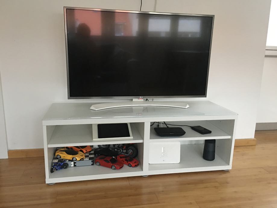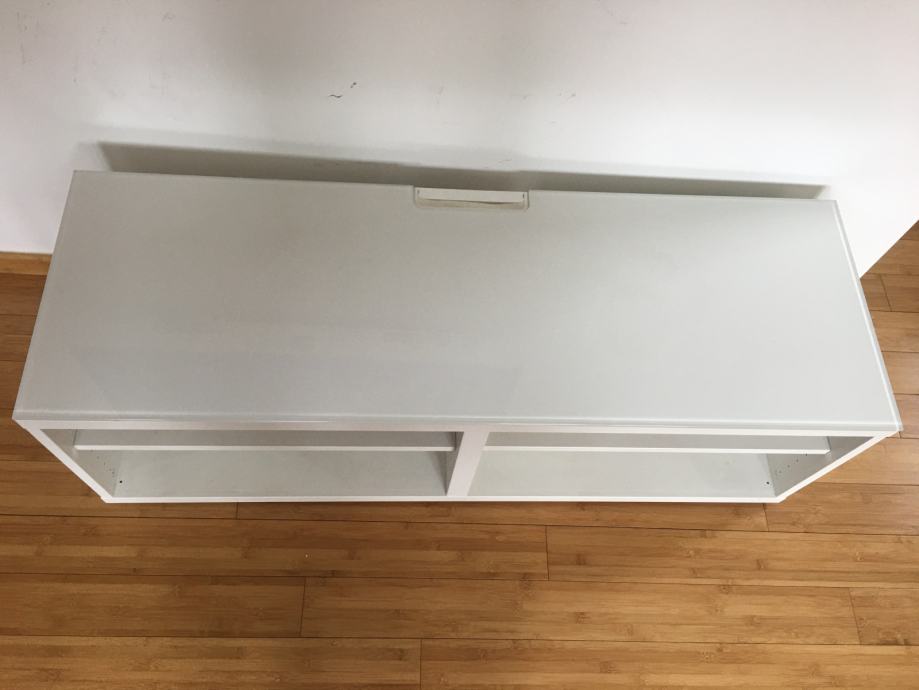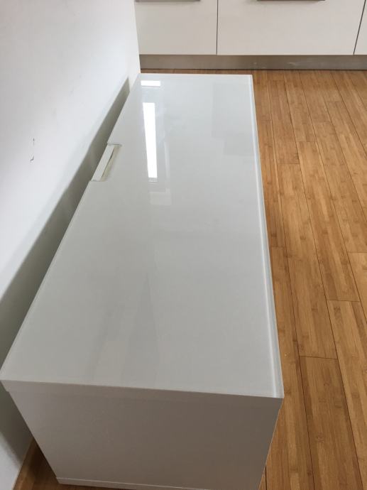 IKEA komoda za TV u super stanju. Bijela komoda sa mlijećnim staklom gore.
