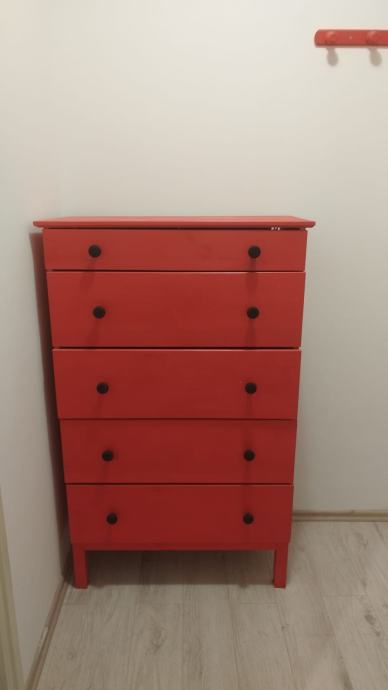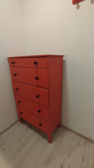 Komoda je u odličnom stanju, nema oštećenja. Obojana je u crvenu mat boju za drvo.