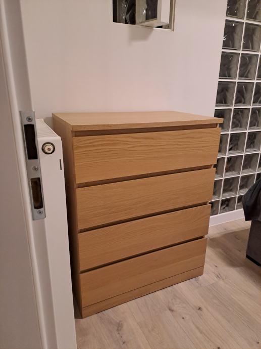 Komoda s 4 ladice, bijelo bajcani hrastov furnir