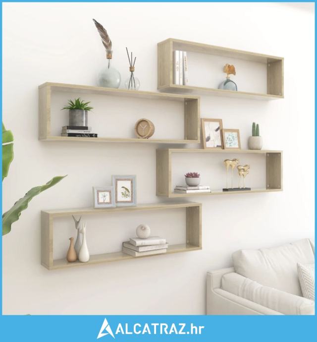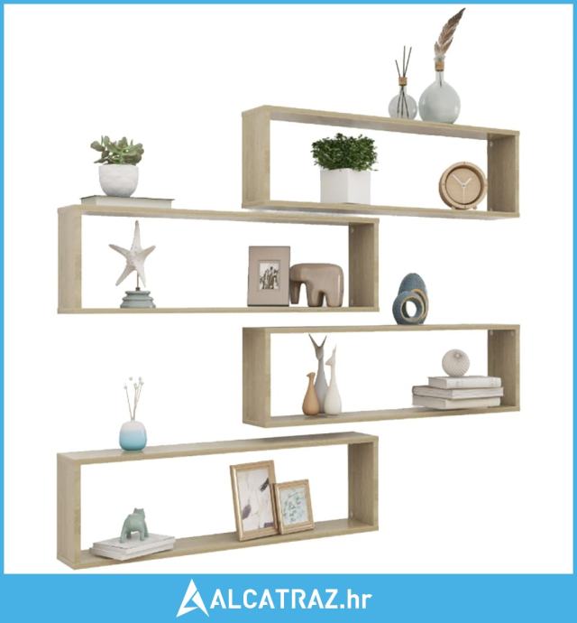 Kockaste zidne police 4 kom boja hrasta 100 x 15 x 30 cm drvene - NOVO
