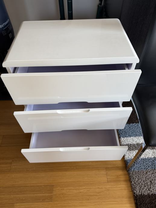 Prodajem komodu s 3 ladice dimenzija 60x40x76 (ŠxDxV), bijele boje, visoki sjaj.
