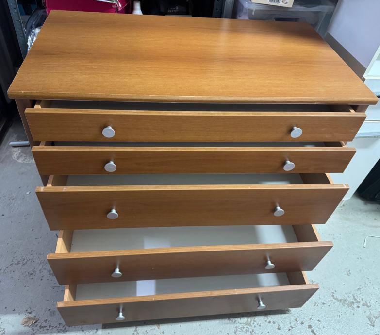 Komoda sa 5 ladica u dobrom stanju čvrsta , masivna , dimenzija 100 x 55 cm visina 86 cm , postoji mogućnost dostave kupcu po dogovoru .
