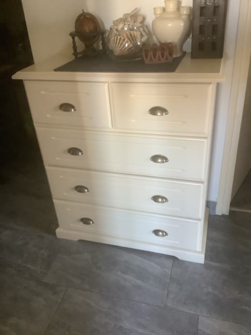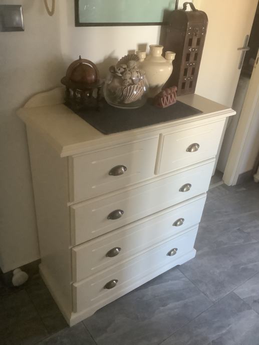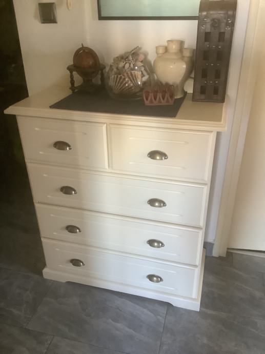 Komoda drvo, farbana u antik bijelu boju.