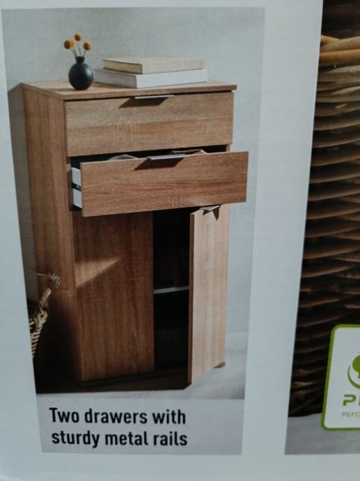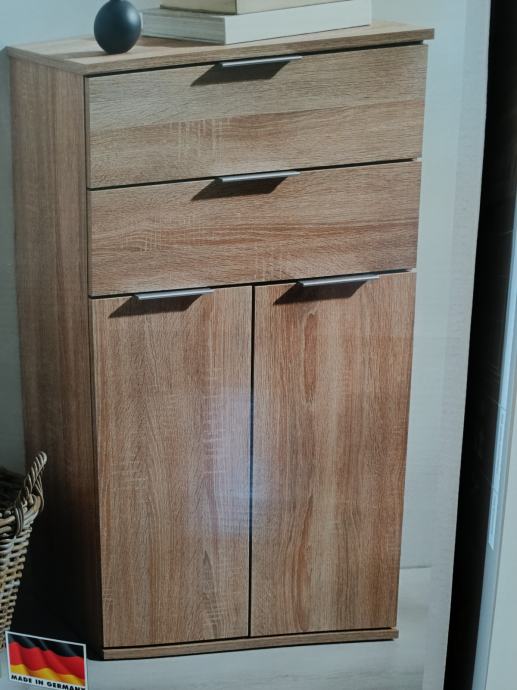 Dvije ladice i dva ormarića sa metalnim ručkama u gornjem dijelu