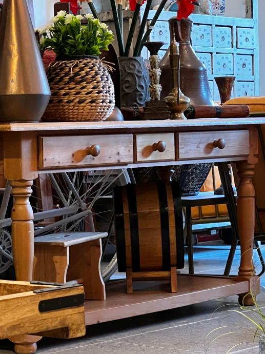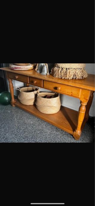 Drvena komoda, regal sa tri ladice , pogodna za odlaganje gramofona i ploča , za ukrase i cvijece … ostalo