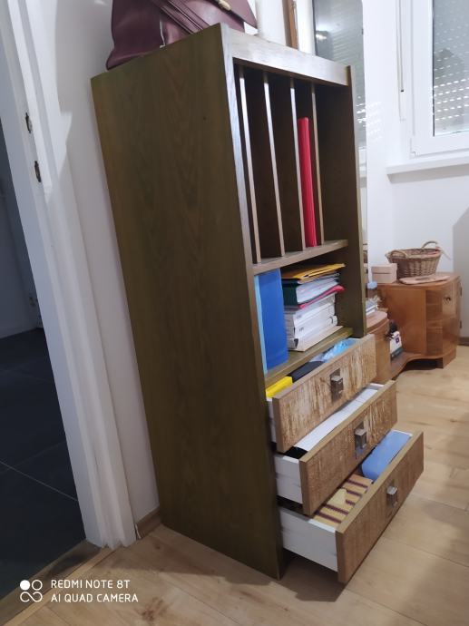 Komoda mislim da je prvobitna namjena za lp ploče. Rekla bih dvo i dno ladica iverica. Pregrade se mogu postaviti i vodoravno. Stanje kao na fotografijama. Staro oko 40 g.