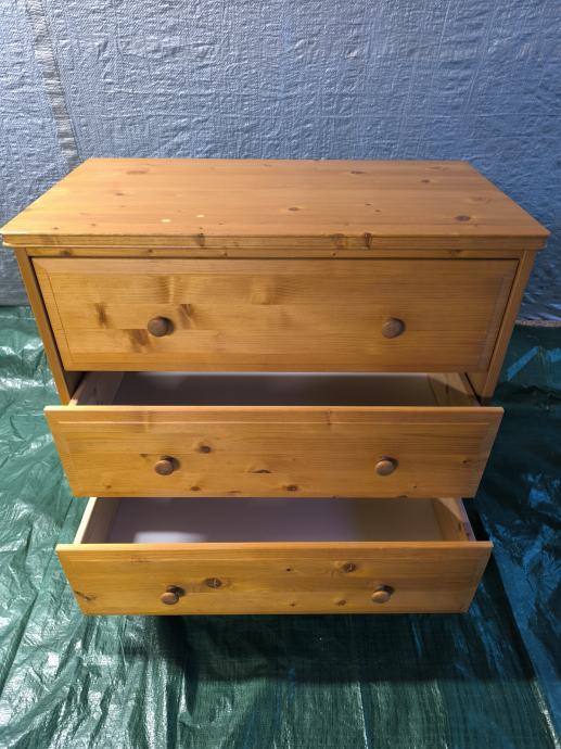 Komoda, savršeno stanje, elegantna, puno drvo, kao nova, djeluje kao stilski namjestaj. Pogodna i za spavaću sobu i za dnevni boravak. Dimenzije na slici. Moguća dostava. Vidi i druge oglase.