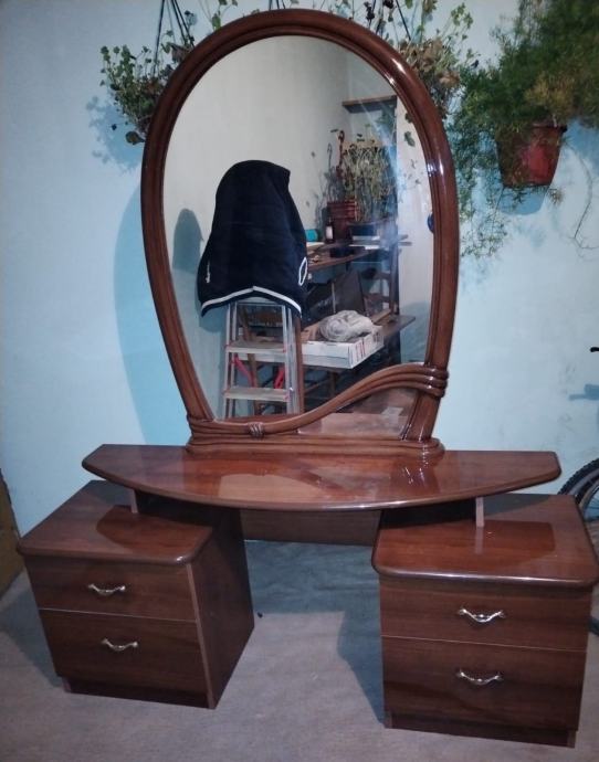 Prodajem komodu, dolazi u kompletu s ogledalom. Sastoji se od 4 (cetiri) ladice. U kompletu je i mala stolica koja nije na fotografiji.