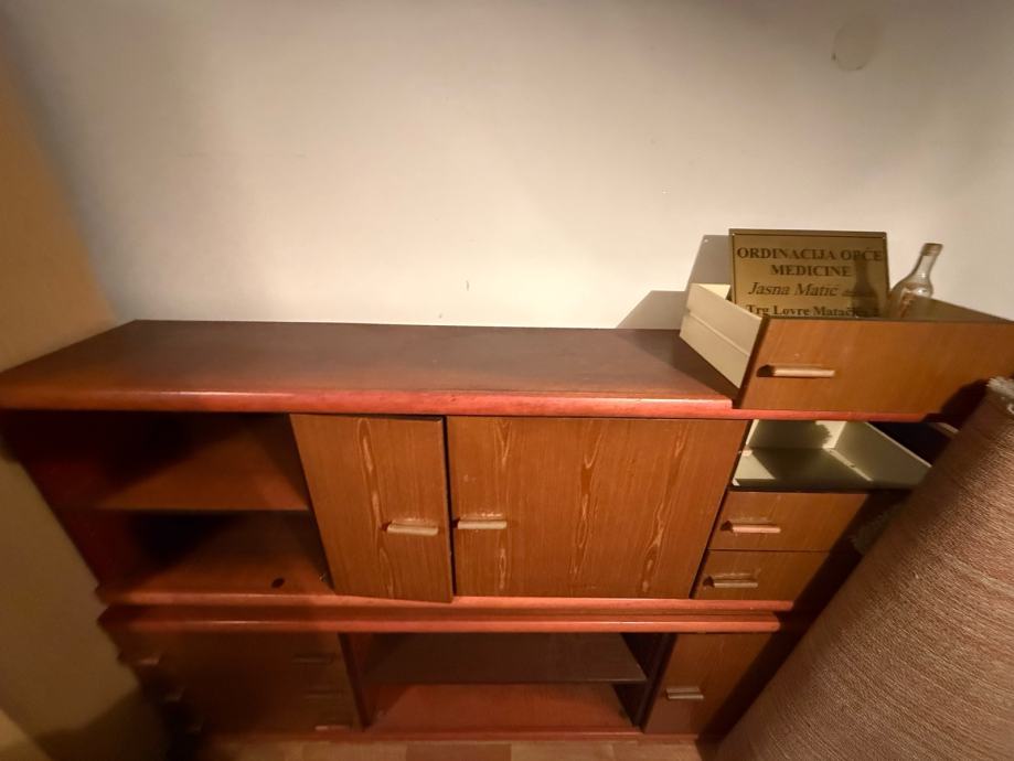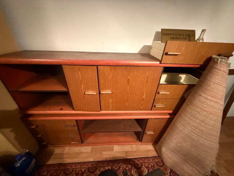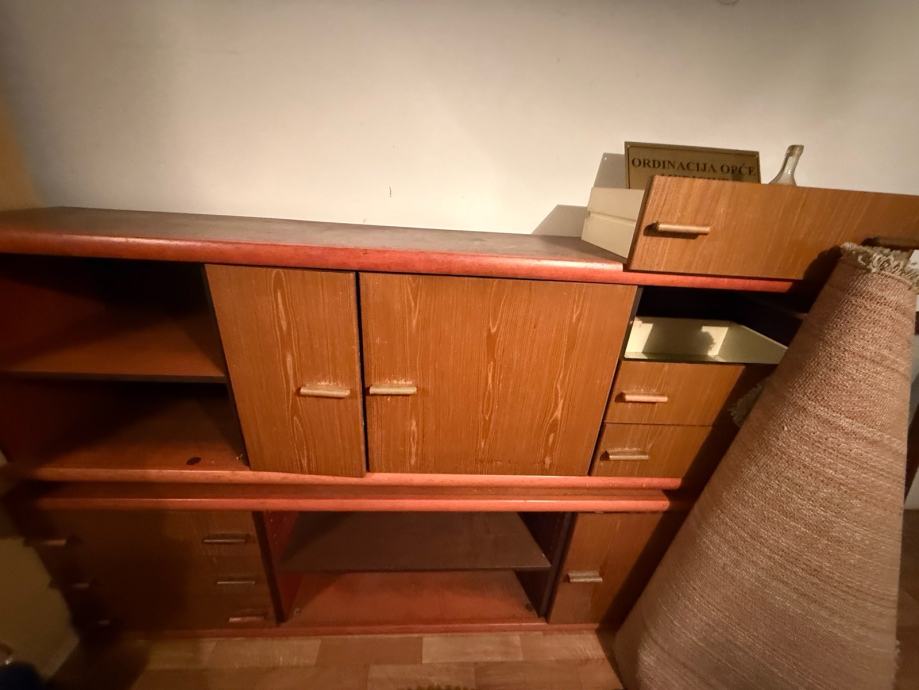Prodajem komodi od drva. Radi se o većem komadu namještaja koji se sastoji od dva dijela – niže osnove s otvorenim policama i gornjeg dijela s dvokrilnim ormarićem u sredini te nekoliko ladica Otvorene police nude dodatno mjesto za odlaganje, a ladice i ormarić praktični su za pohranu raznih stvari. Dimenzijama je prikladna za dnevni boravak ili hodnik.