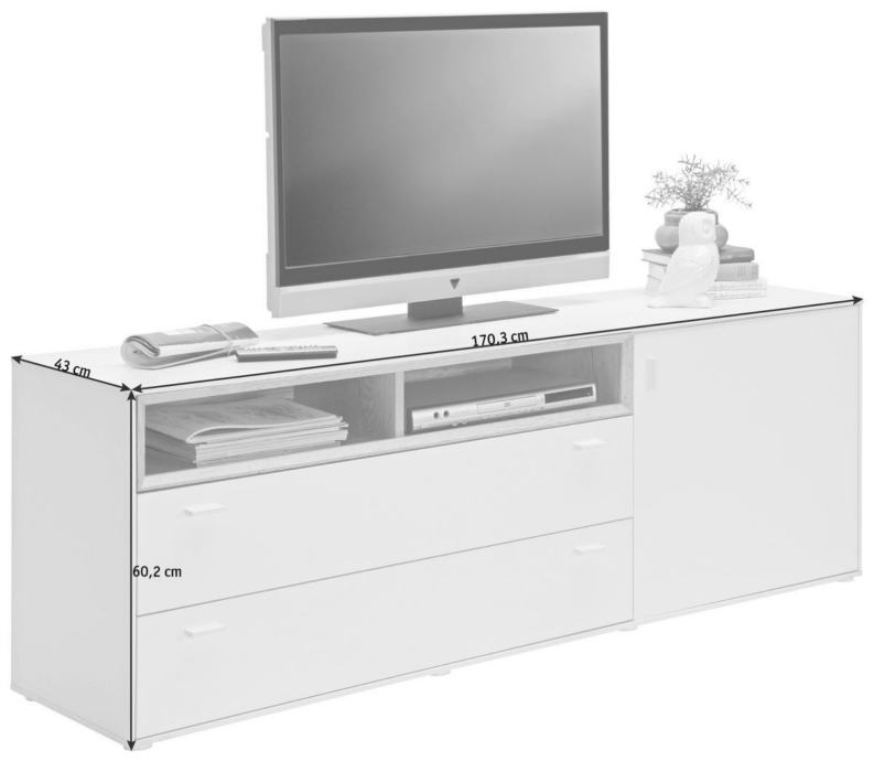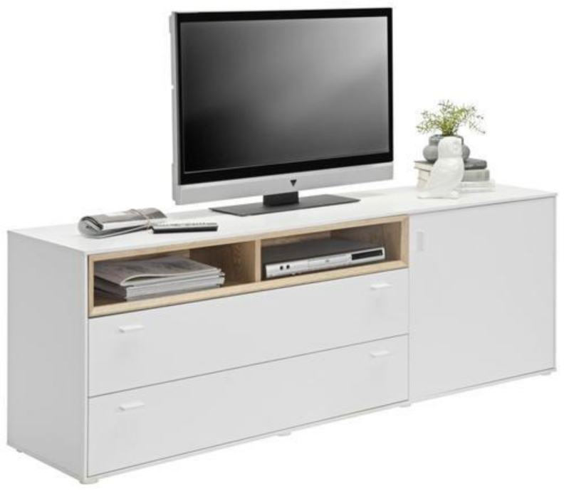 Komoda / ormarić za TV, dimenzije 170,3/60,2/43 cm u kombinaciji bijele boje i boje hrasta, montiran, NOVI