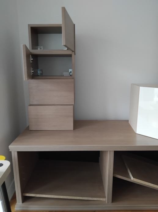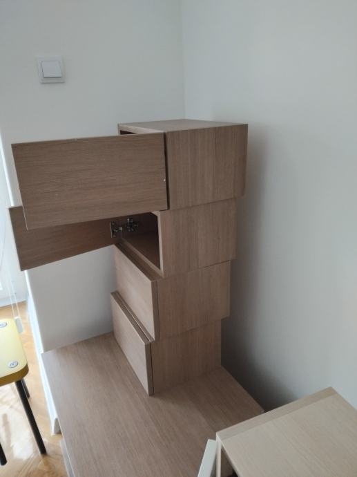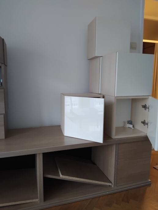 Prodajem komodu i 10 visecih ormarica.Manji ormarici malo tamniji dim.35x25x20cm.Veci imaju bijela vrata visoki sjaj.Dim.35x35x25cm.Komoda dubina 55cm dužina 165.Ima 1 dio sa vratima i ostalo police.Može se kupiti i posebno.