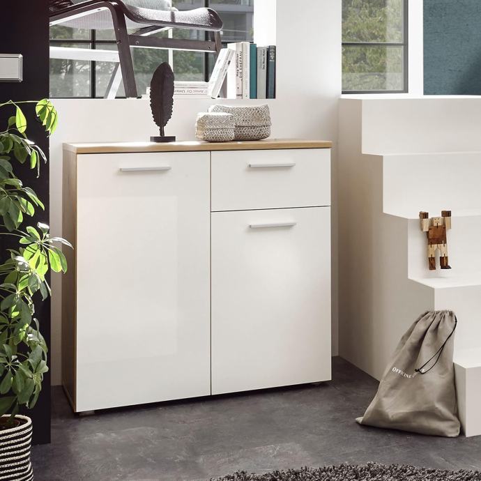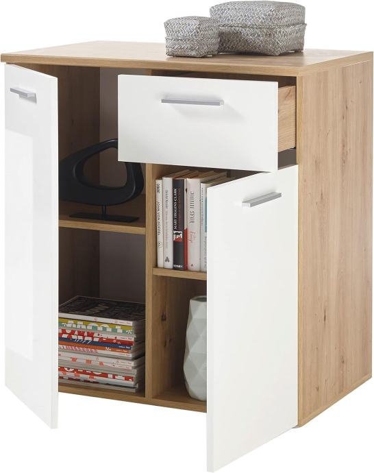 -Puno prostora za pohranu – komoda s više vrata i ladica nudi prostor za pohranu raznih stvari. Plastične ručke u aluminijskom izgledu upotpunjuju komodu i pružaju domaći ugođaj.