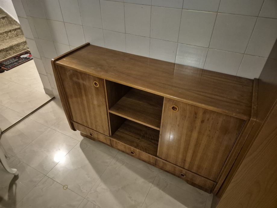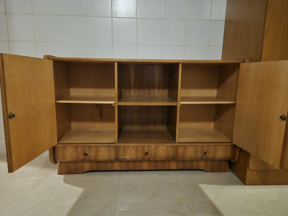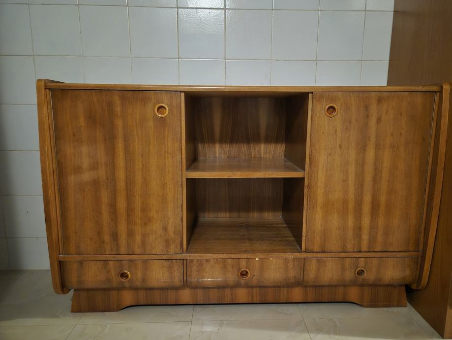 Prodajem komodu od punog drveta (starinska, vintage stil), ima 3 ladice i 6 polica, izvrsno očuvana, stara preko 70 godina (kasni art deco / rani modernizam). 250 eura.