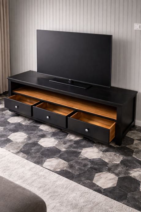Zahvaljujući modernoj crnoj boji i jednostavnim linijama, savršeno se uklapa u suvremene interijere. Idealna kao TV komoda ili komoda za dnevni boravak.
