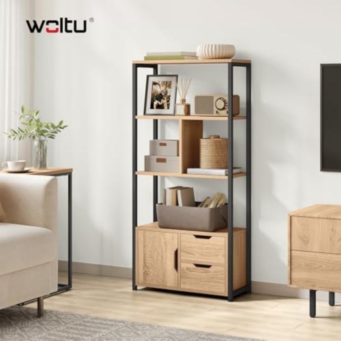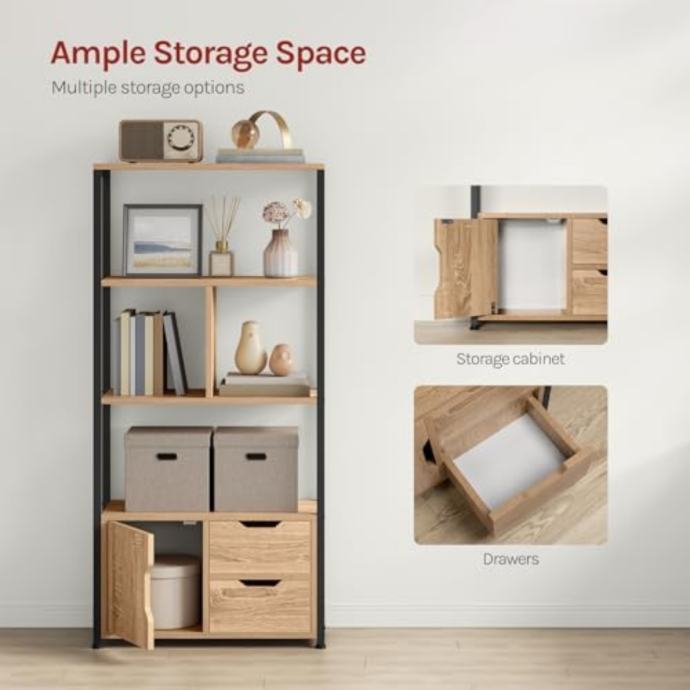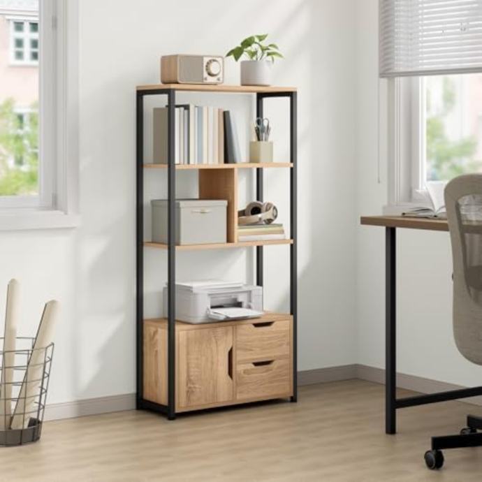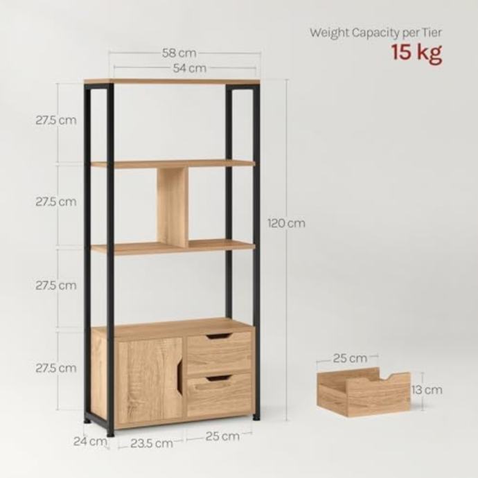Polica za odlaganje s otvorenim odjeljcima, Ormar i ladice, Jedinica za odlaganje za dnevni boravak, kuhinju, ured, MDF i metal, 58 x 24 x 120