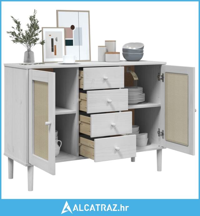 Komoda SENJA bijela izgled ratana 112x40x80 cm masivna borovina - NOVO