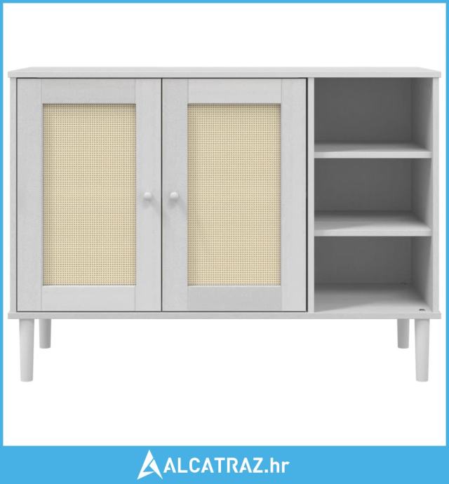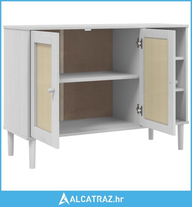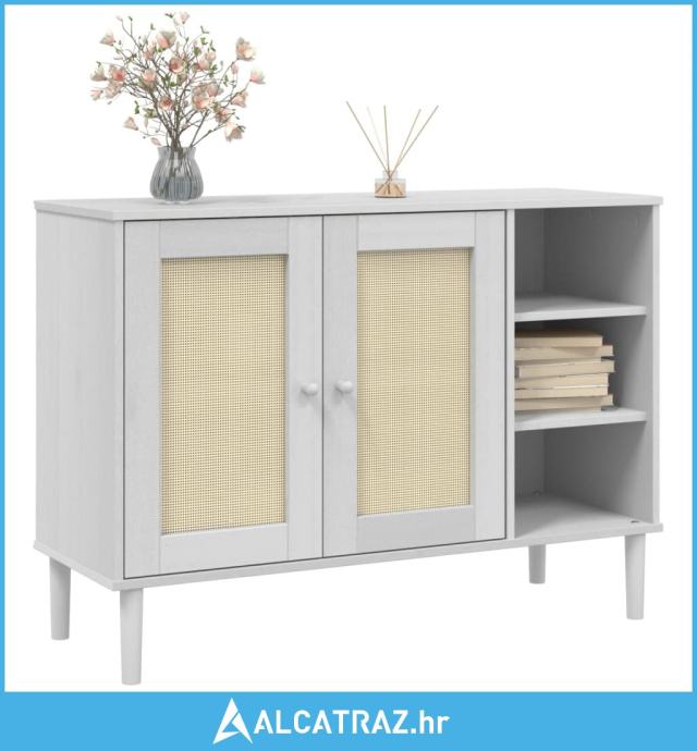 Komoda SENJA bijela izgled ratana 112x40x80 cm masivna borovina - NOVO