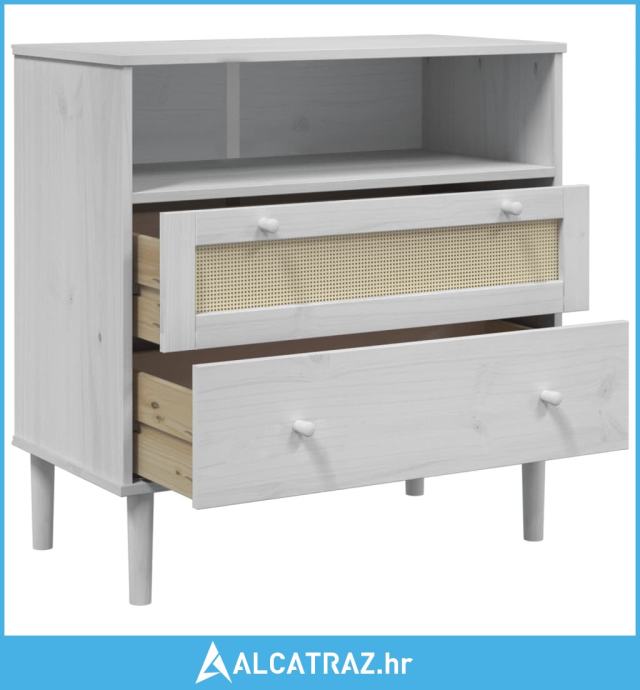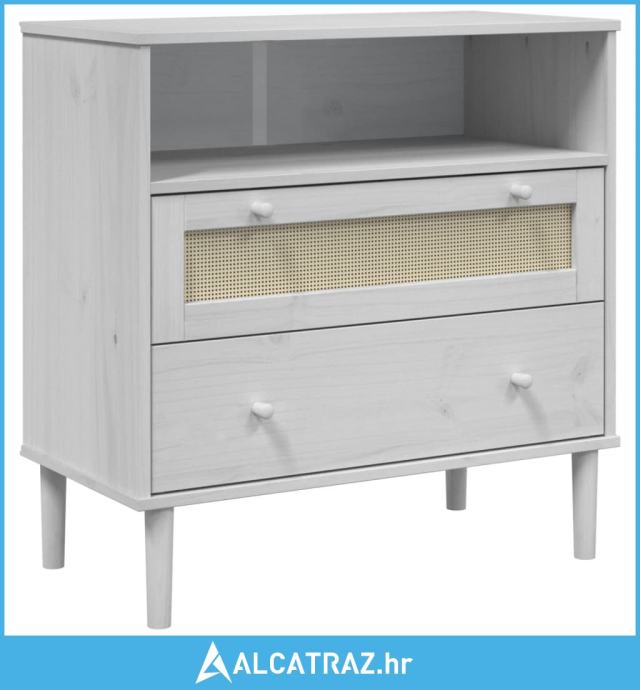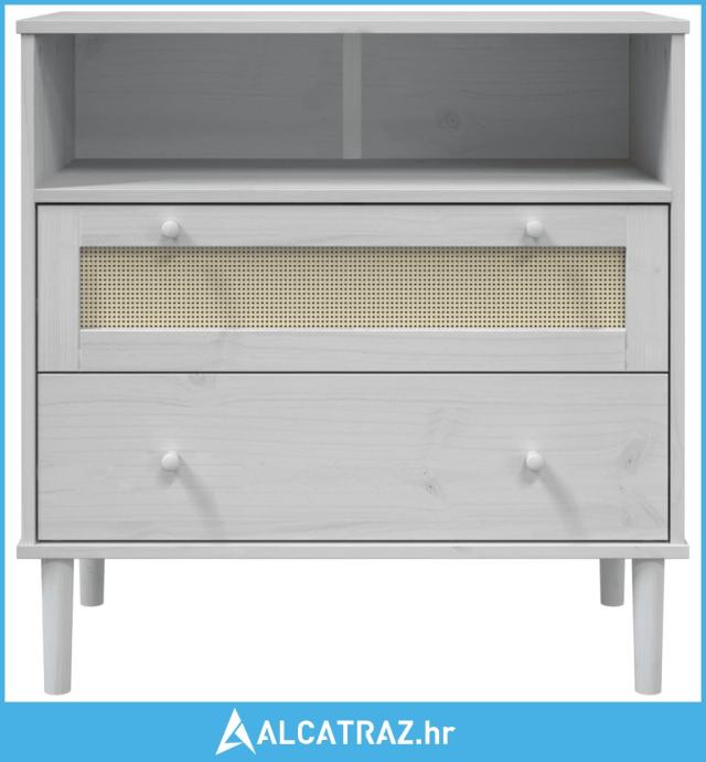 Komoda SENJA bijela izgled ratana 80x40x80 cm masivna borovina - NOVO