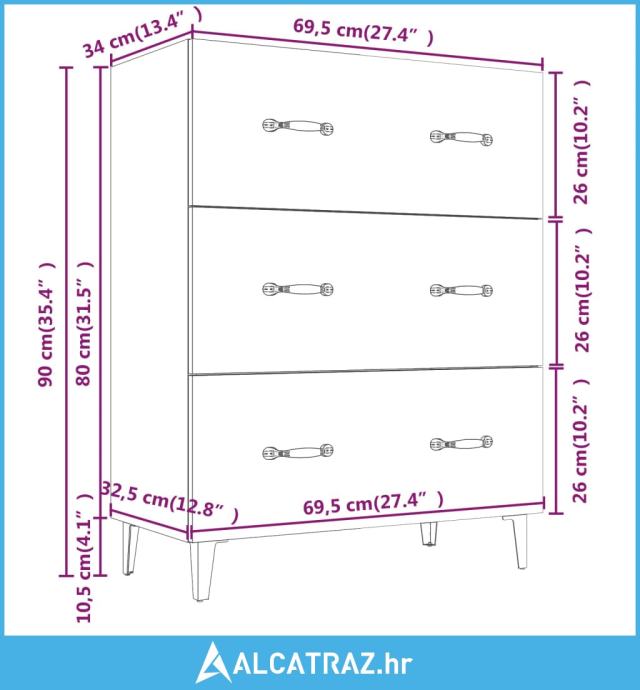 - Dimenzije: 69,5 x 34 x 90 cm (Š x D x V)