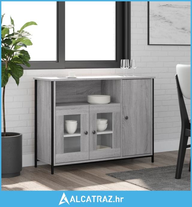 Komoda sivog hrasta sonome 100x35x75 cm od konstruiranog drva - NOVO