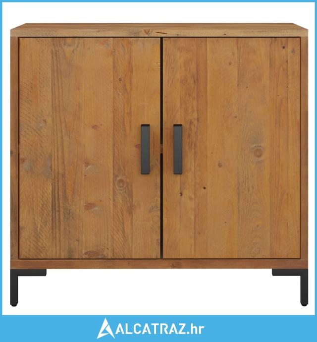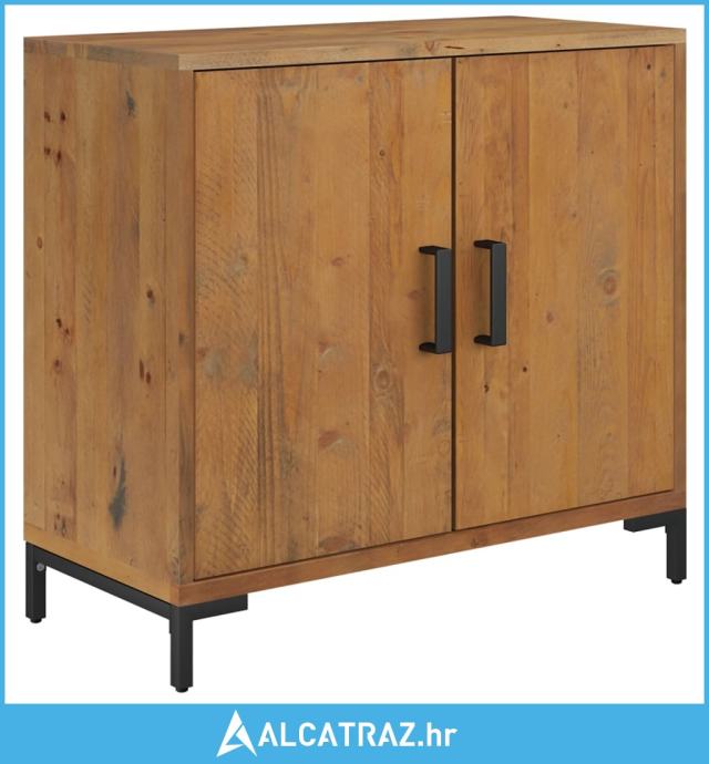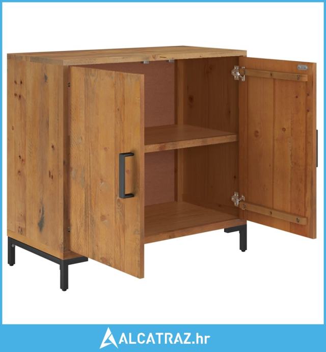 - Masivna borovina: Ormarić je izrađen od masivne borovine, koja ima neke grube rubove, nedostatke i ogrebotine, što mu daje starinski industrijski izgled.