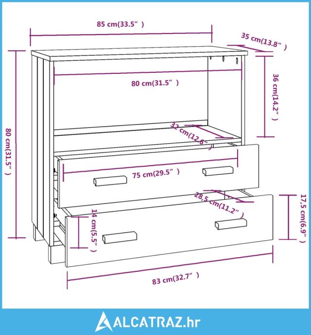 - Ukupne dimenzije: 85 x 35 x 80 cm (Š x D x V)