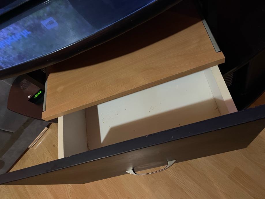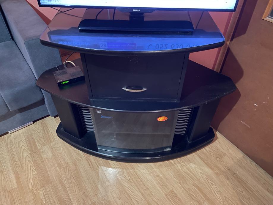 Prodajem očuvanu komodu za TV koja ide u ugao prostorije. Gornja strana na koju ide TV se može okretati 360 stepeni i pomerati u svim smerovima. Također ima puno prostora za skladištenje stvari. Meni je velika jer sam si uzeo veliku garnituru. Cijena 55e.