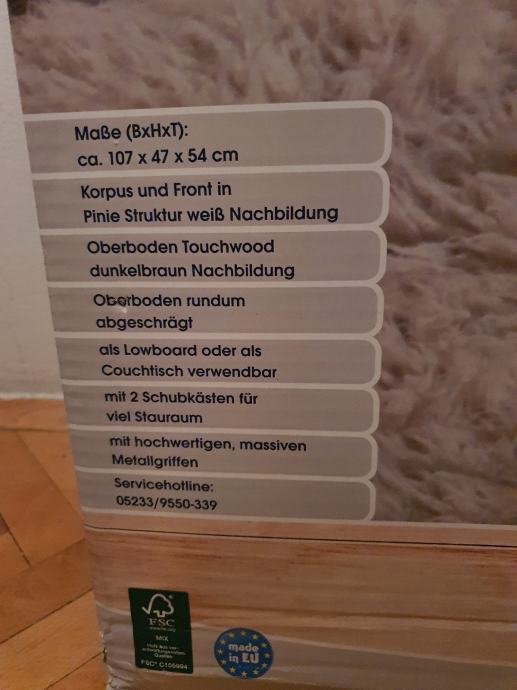 Potpuno nova, crno-bijela drvena komoda,ne raspakovana u kartonu, rustikalnog stila.