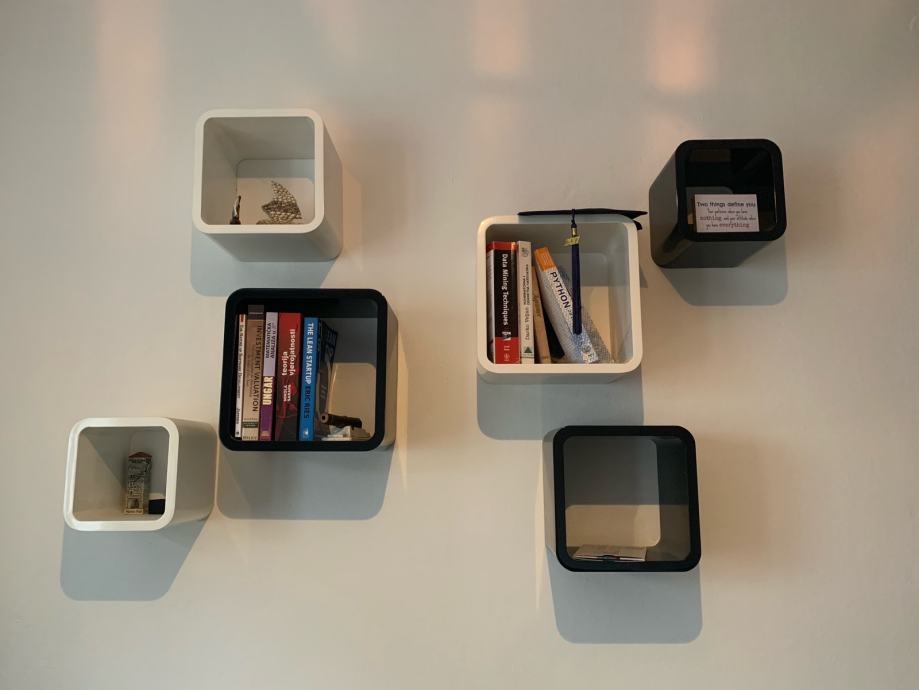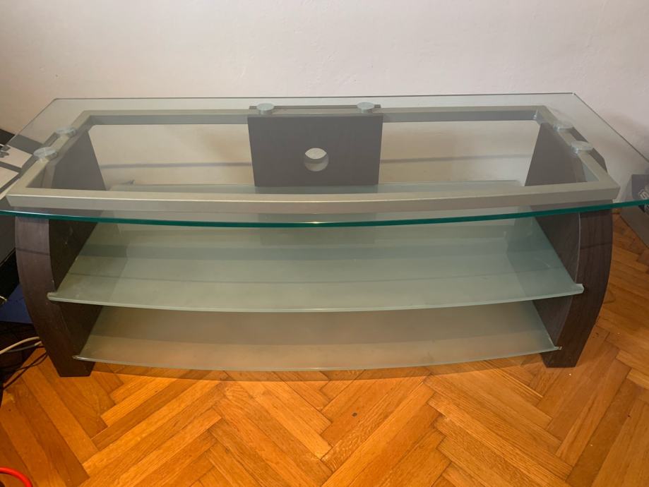 Komoda za tv dim 120x50 vis 43, kombinacija drvo i staklo 60 eura, Zidne police 6 kom; 3 crne i 3 bijele 20 eura, zavjese 120x260 2 kom 10 eura, sve zajedno 70 eura, samo osobno preuzimanje