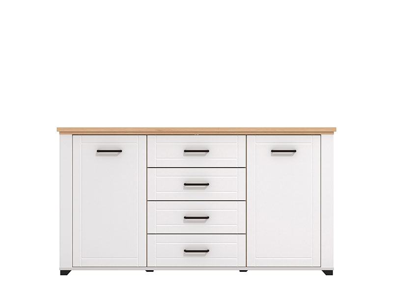 Komoda nudi odličan raspored s četri praktične ladice u sredini i dva bočna zatvorena ormarića.