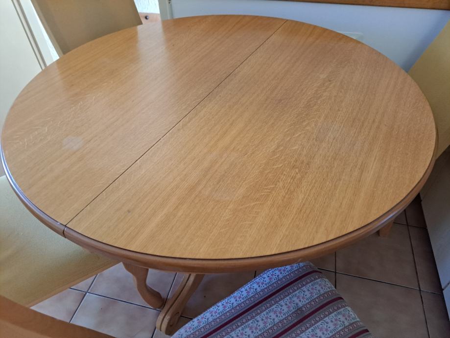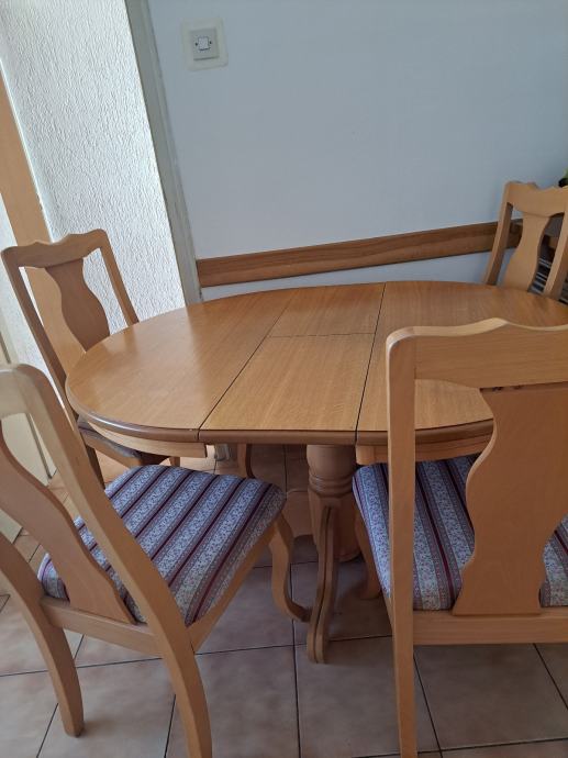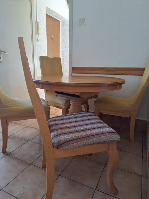 Ima i pripadajući okrugli izvlačni kuhinjski stol i 4 stolice
