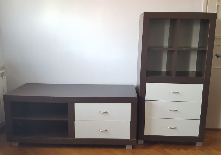 Komplet koji se sastoji od vitrine i komode za dnevnu sobu.