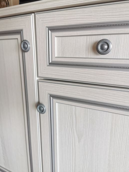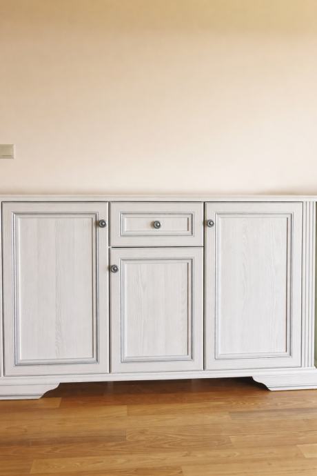 Idealan je za dnevni boravak ili blagovaonicu, svijetle je boje (dekora drveta) s elegantnim ukrasnim letvicama i kvalitetnim ručkicama.