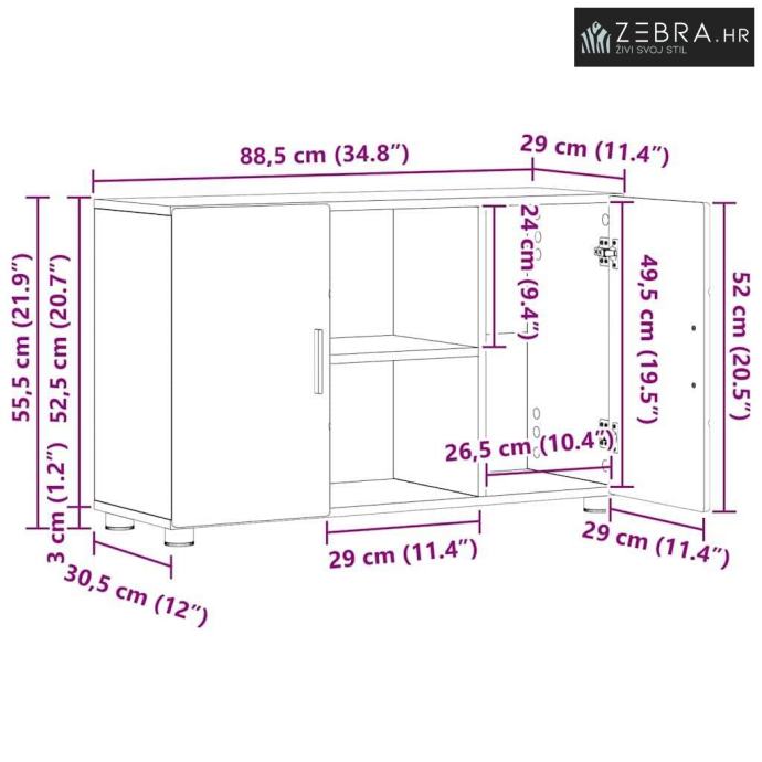 Sveukupne dimenzije: 88,5 x 30,5 x 55,5 cm (D x Š x V)
